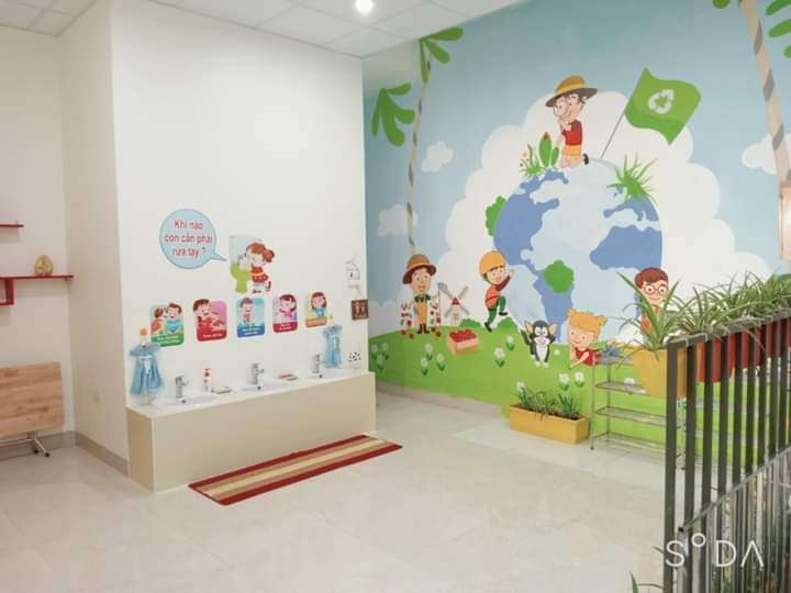 - Cơ sở vật chất khang trang, sạch đẹp, không gian thoáng mát, sạch sẽ, có nhiều môi trường khác nhau cho bé hoạt động, vị trí thuận lợi trong việc đưa đón con. Trang thiết bị, đồ dùng, đồ chơi hiện đại, đảm bảo an toàn, thân thiện